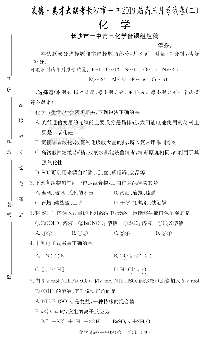 下一篇:【理數】炎德英才大聯考2019長沙一中高三2次月考