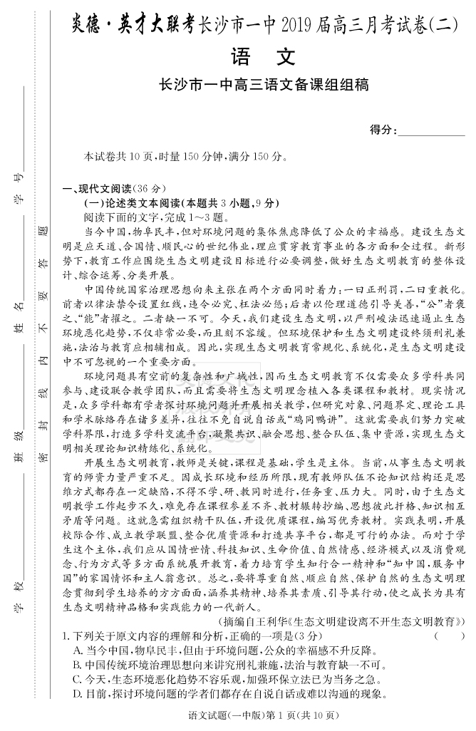 上一篇:【英語】炎德英才大聯考2019長沙一中高三2次月考
