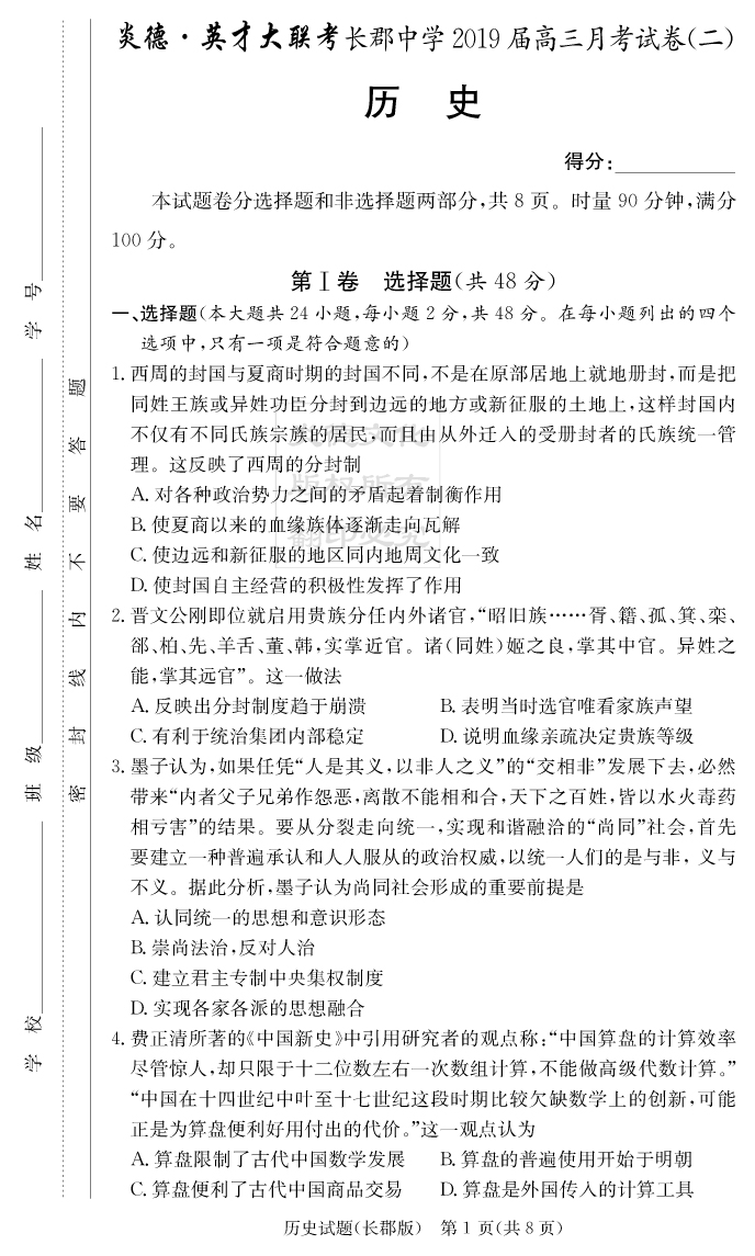 | 資源類別: | 名校月考 | |