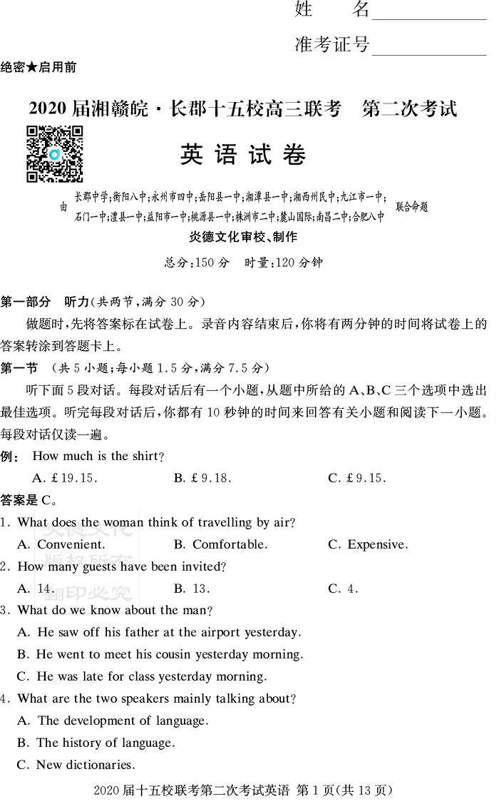 下一篇:【語(yǔ)文】炎德英才大聯(lián)考2020屆長(zhǎng)郡中學(xué)高三8次月考(十五校聯(lián)考一)