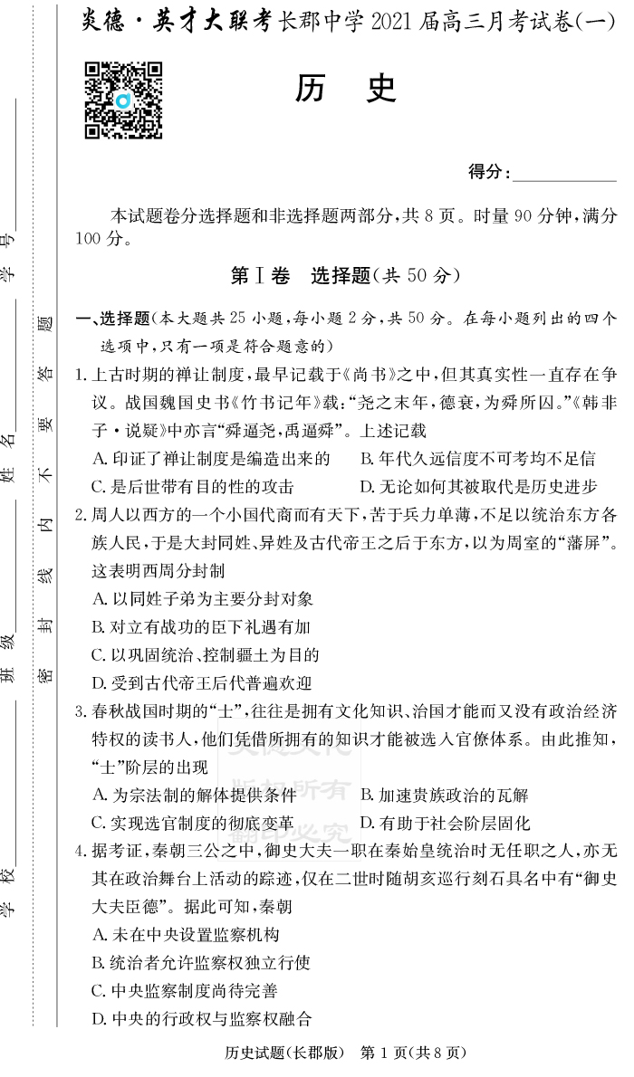 2026名師導學·高考總復習·小題量基礎周周考·歷史