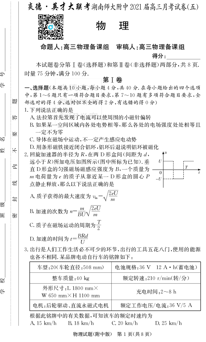 下一篇:【英語】炎德英才大聯考2021屆湖南師大附中高三5次月考