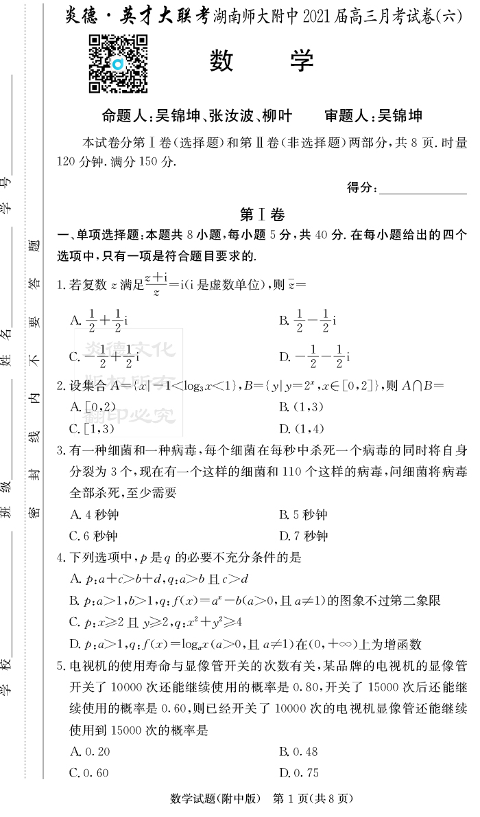 上一篇:【生物】炎德英才大聯考2021屆湖南師大附中高三6次月考