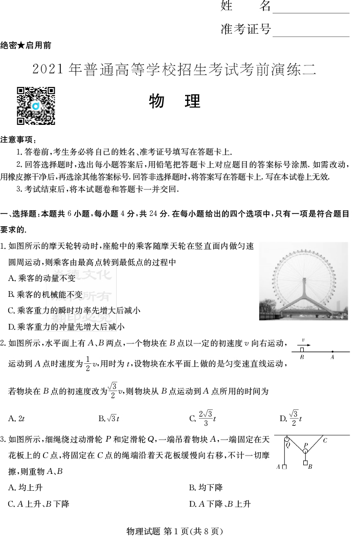 下一篇:【英語】2021年普通高等學校招生全國統一考試考前演練(二)