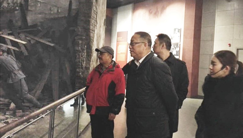 ▲湖南炎德文化實(shí)業(yè)有限公司董事長何譽(yù)軍(左一)陪同十四屆全國人大常委會(huì)副委員長,民革中央主席鄭建邦(左二)參觀湖南抗戰(zhàn)紀(jì)念館。