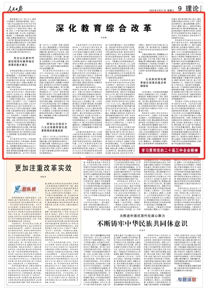 《決定》提出:“加快建設(shè)高質(zhì)量教育體系,統(tǒng)籌推進育人方式、辦學(xué)模式、管理體制、保障機制改革。”同時,就深化教育綜合改革提出了一系列重點舉措。我們要認真貫徹落實黨中央決策部署,求真務(wù)實抓落實、敢作善為抓落實,實現(xiàn)教育系統(tǒng)性躍升和質(zhì)變,為推進中國式現(xiàn)代化提供全方位的人才支撐、智力支持。