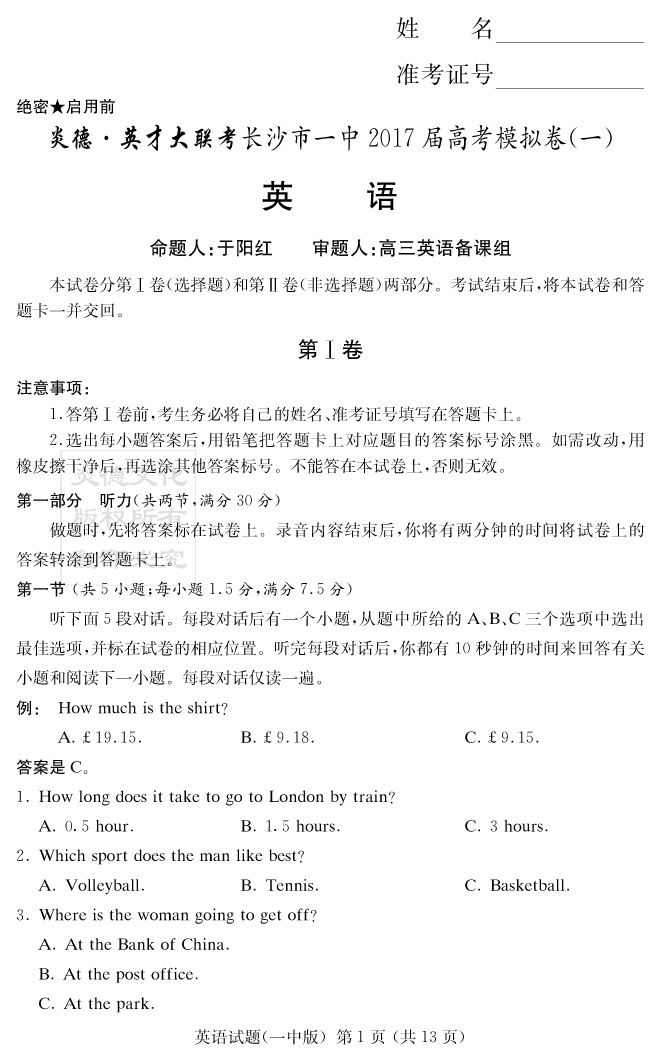 下一篇:【語文】炎德英才大聯考2017長沙一中高三10次月考(模擬一)